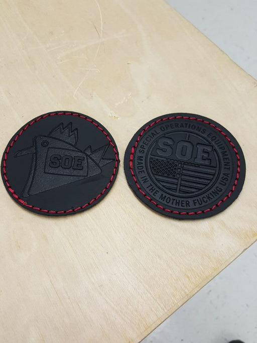 High grade leather patch. Embossed with our round MITMFUSA logo. 3.5" around. Nice heavy red cord stitching sets them off and really gives them tha...