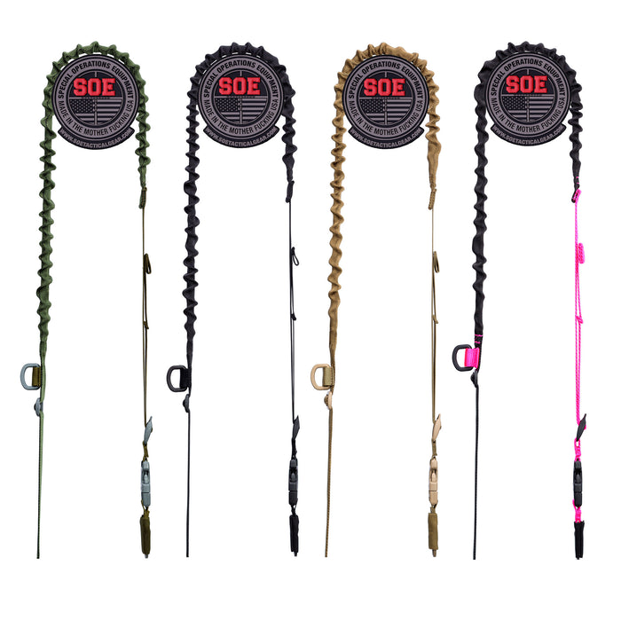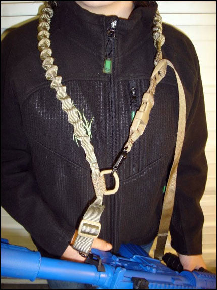 We finally present to you the convertible sling. It will run as a two-point sling, but can be unclipped from the front weapon mount and clipped through a D-ring attached on the back of the sling to convert it to a single point. We offer any adapter you would like or already have, including Mash hook, HK clip, webbing adapter, or 550 cord adapter.
