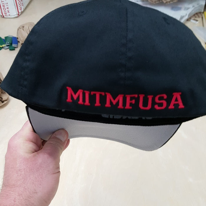 Limited run. Real flexfit ball cap with embroidered Greek SOE on the front and MITMFUS on the back.