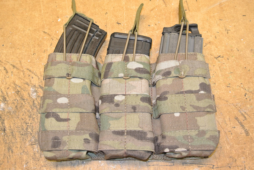 The pouches provide two methods of retention: removable bungee and Velcro. The shingle features an interior completely lined in loop Velcro. By attaching a 1" x 1" piece of hook Velcro to the magazine, you ensure complete retention. Just as a heads up, any more than a 1" x 1" piece of Velcro on the magazine will not let you remove the magazine without significant effort.