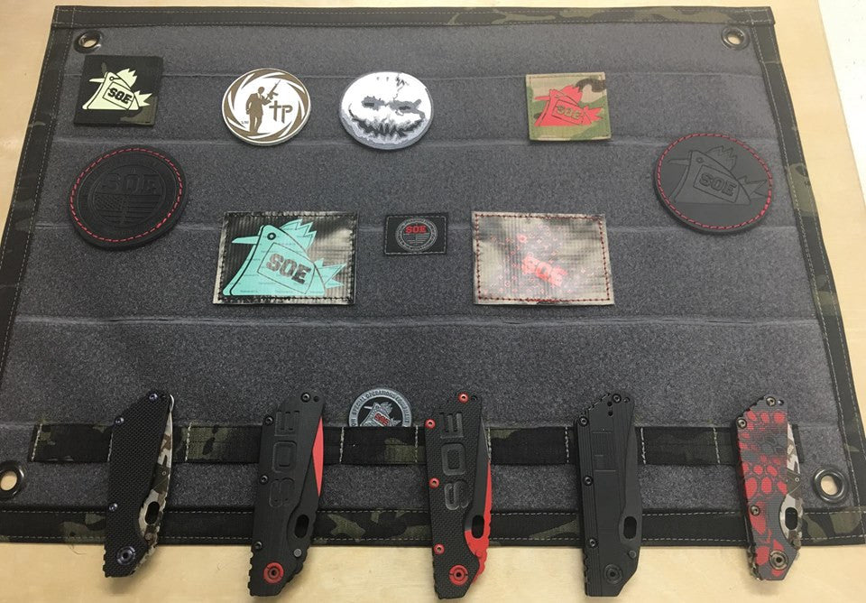 New patch wall hanger.18x24 multicamblack 1" rolled over border. Pals strip with slots large enough to run cock tail thru and hold challenge coins.