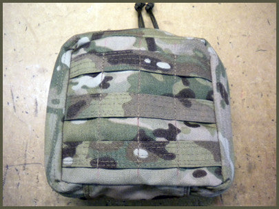 This is roughly 6"x6" and hold izzy or H bandages, H&H gauze, quick clot battle gauze NPA, 14ga needles and has a flat pocket inside to hold chest seals and Pet gauze.