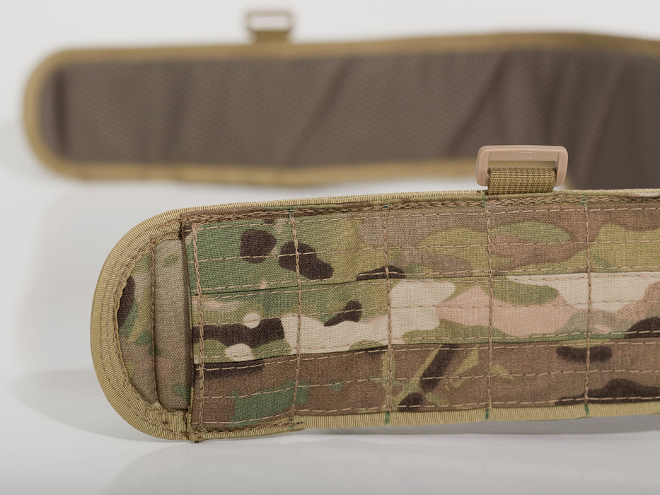 The Tapered War Belt is lined front to back with genuine CoolMax material to improve ventilation and keep the waist cool, reducing the chances of chafing or overheating. Our design gradually progresses from 3.5" height to 4.5" height in the back, providing a more natural, hugging shape that sits more naturally on your hips. This allows your body's most stable platform to take the weight load of your first line gear more effectively, reducing or eliminating fatigue from belt-mounted kit and lessening the perceived weight of your gear.